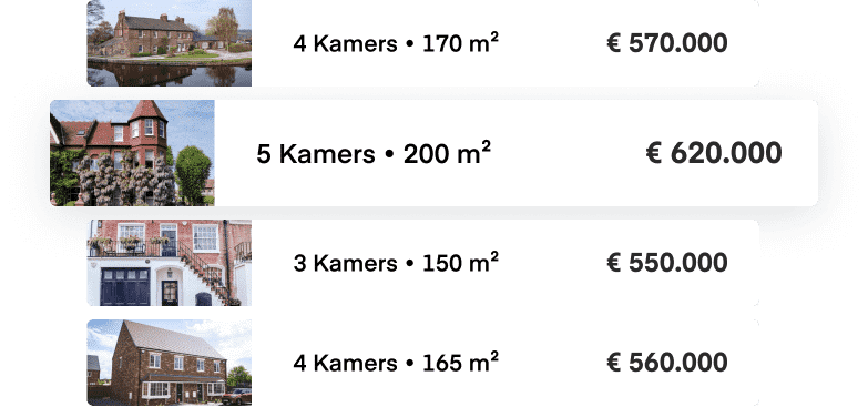 Onze geautomatiseerde woningwaardecalculator levert de nauwkeurigste waardebepaling op de vastgoedmarkt in minder dan 3 minuten. Hiervoor worden duizenden vastgoedtransacties in Nederland geanalyseerd.